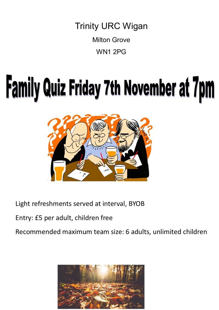 Trinity Family Quiz 25 August 2025 / sam.maiden / Uncategorised / No Comments The Trinity Family Quiz will be held on Friday 7th November at 7pm. for more details please press ‘Read More’.